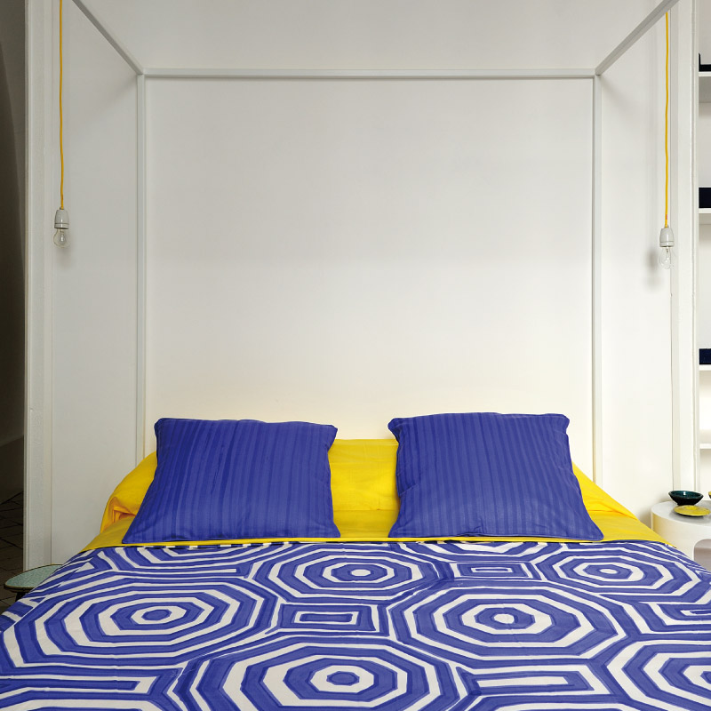 FOUR-POSTER BED IN PAINTED TUBULAR STEEL (2,5 X 2,5). INCLUDES ORTHOPAEDIC SLATTED BED BASE(mattress not included).